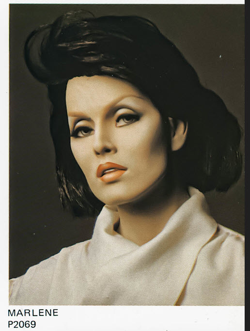 „Marlene“ (rechts im Bild oben / Originalkatalog) mit dem Seriencode MW 16 stützt ihre rechte Hand aus dem angewinkelten Arm heraus in ihre Hüften.