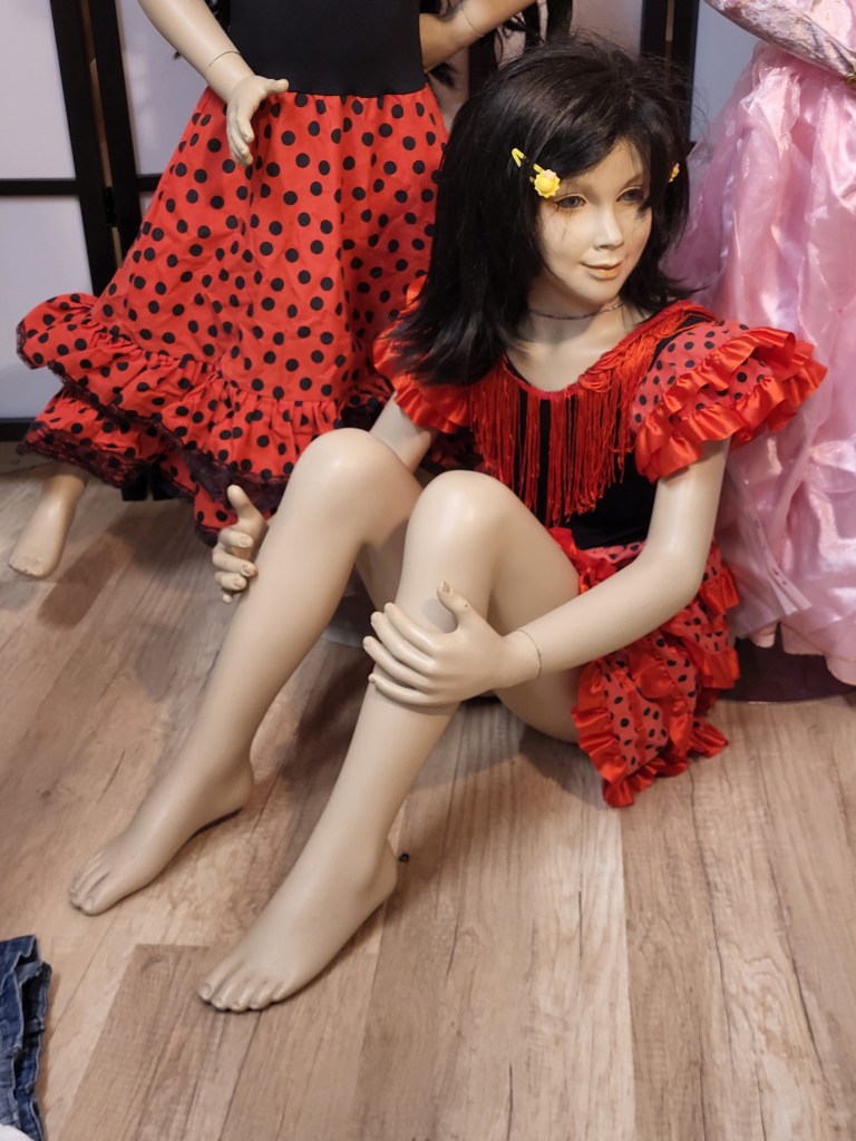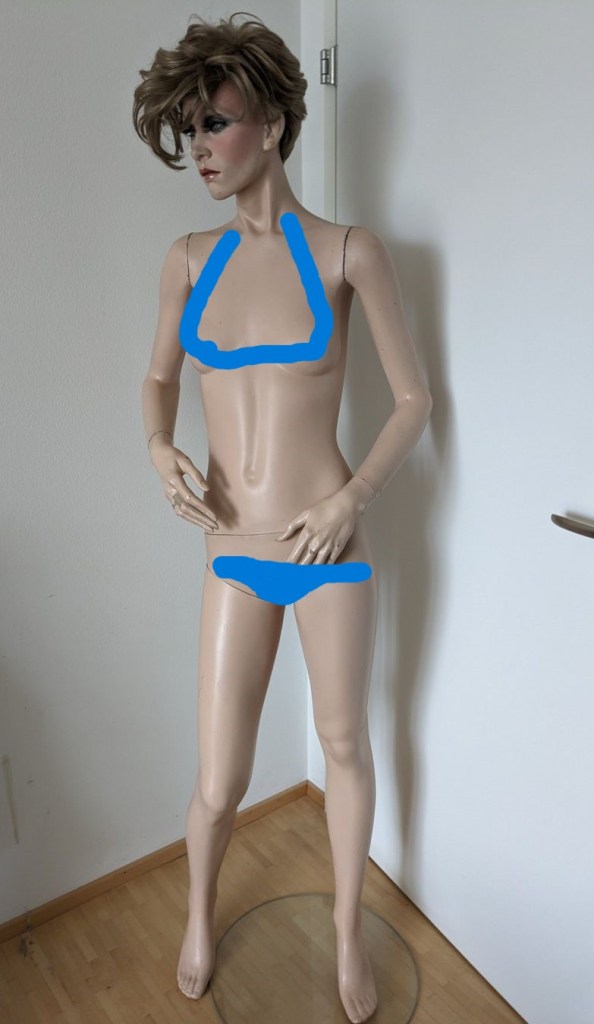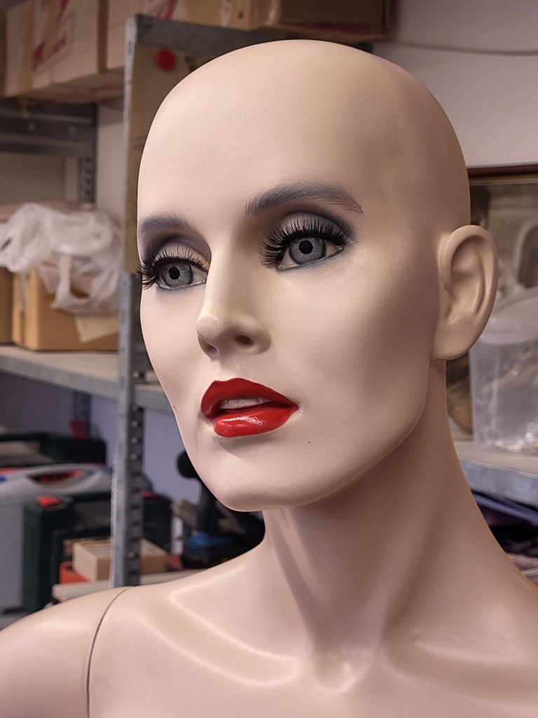 Aber sie standen auch im Wohnbereich, teils dünn und dürr, durch Inspiration von den Skulpturen von Alberto Giacometti. Wieder andere waren üppig und weiblich; und von Doris (ein ehemaliges Fotomodell) war ich so begeistert, dass sie aus heutiger Sicht vermutlich in der quasi „Zeitzone des Urknalls für meine Begeisterung für Schaufensterfiguren“ zu suchen wäre.