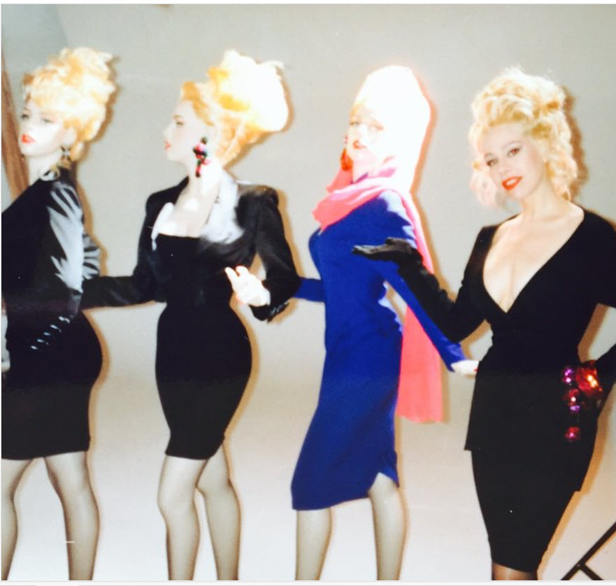 Dianne Brill live (ganz rechts) präsentiert an der Messe 1990 die neue Kollektion von Adel Rootstein DB 01 – DB 03. Drei Posen in einer eigens ihr gewidmeten Serie „Dianne Brill“. Quelle Instagram Dianne Brill: https://www.instagram.com/p/yCrhhySN8q/?utm_source=ig_embed