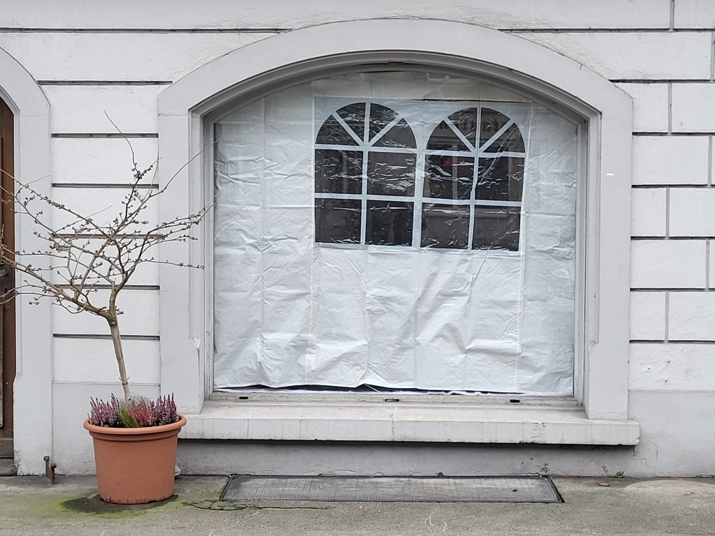 Noch sieht niemand hinein. Das Fenster im Fenster (Seitenblache von einem Festzelt) war doch eine gute Idee….