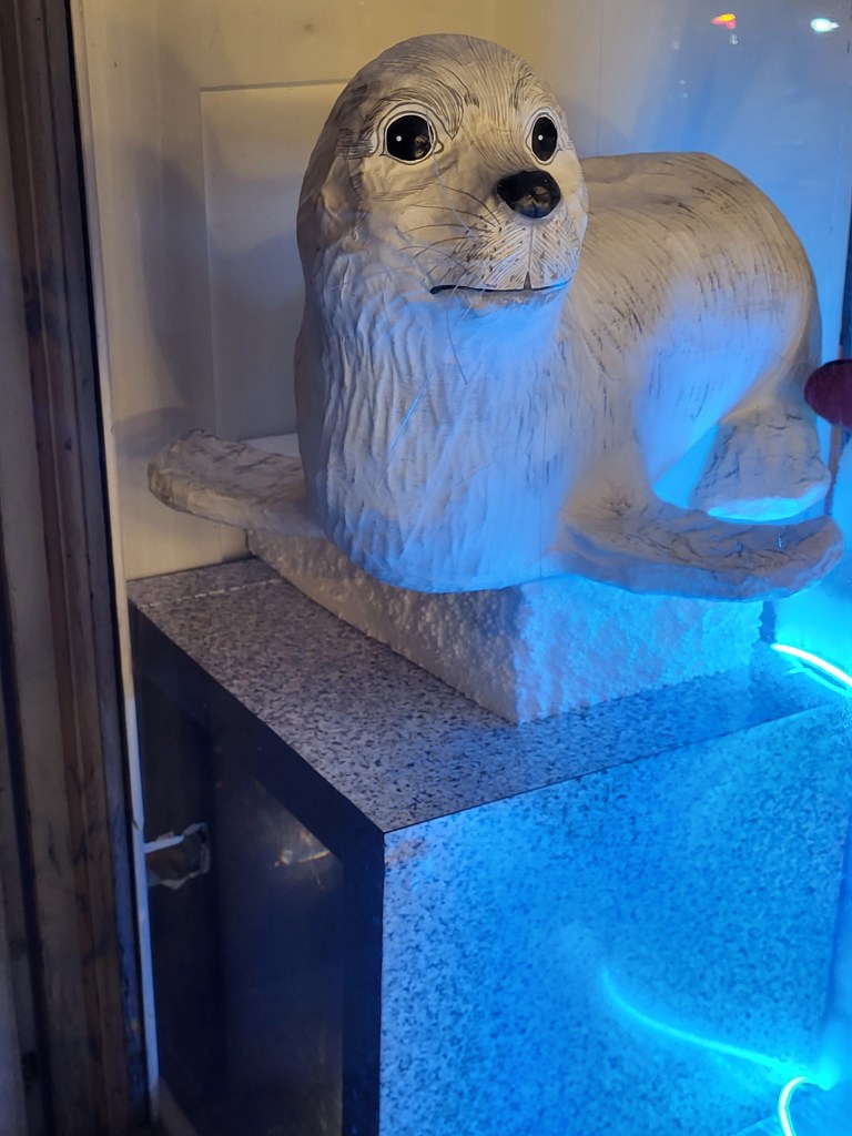 Jetzt fehlen nur noch die Schatten und grünlichen Stellen, die ich mit wasserlöslichem Lack anbrachte. Die Robbe musste sich etwas gedulden, bis die Eisplatten trocken waren.