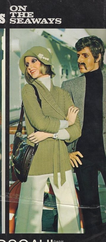 Katalogbild aus dem Jahr 1972 von einem Hindsgaul-Mannequin aus der Serie „On the seaways“ mit der Seriennummer 8010, neben der sitzenden 8016.
