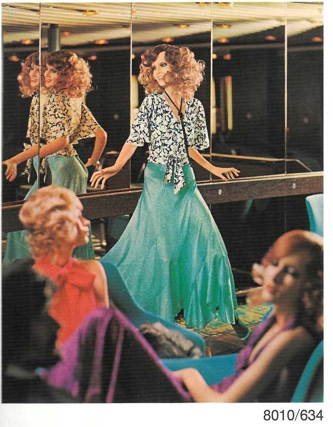 Beim oben abgebildeten Katalogbild der Hindsgaul „On the seaways“ 8010 ist die offene Pose, mit den ausgebreiteten Armen gut sichtbar, wie auch bei einem Schwarzweiss-Foto aus anfangs der 70er-Jahre, wo sie im Scheinwerferlicht in einem Laden neben der sitzenden 8015 aus der selben Serie steht, welche ich ebenfalls besitze und aktuell gerade restauriert wird.