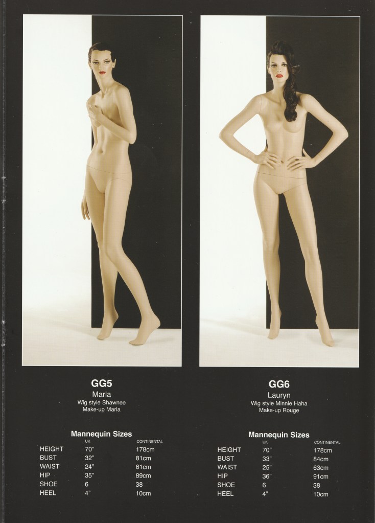 Die Rootstein-Figur GG05 aus der Serie „Glamorous and gorgeous“ ist im Standardmodell mit dem Kopf von Marla (siehe Katalogbild) erhältlich gewesen.