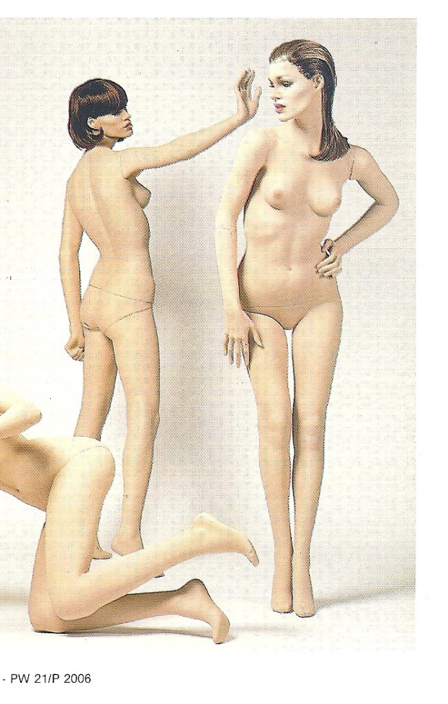 Inzwischen bin ich mit der „Beauties“-Serie von New John Nissen / Schläppi ziemlich vertraut, weshalb ich bei einer Schaufensterfigur wie dieser (siehe untenstehendes Foto) sofort sowohl den Hersteller, wie auch die Bezeichnung der Serie und der Name der Figur identifizieren kann. Nur die Seriennummer hatte ich vor der Abholung falsch geraten. Ich dachte es sei eine PW06 (aus der „Beauties“-Serie mit Leslie-Kopf, doch es ist ein PW21-Torso, wie ich dann vor Ort erkannte. Letztlich ist es aber der selbe Torso, wie bei der PW06: