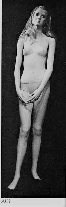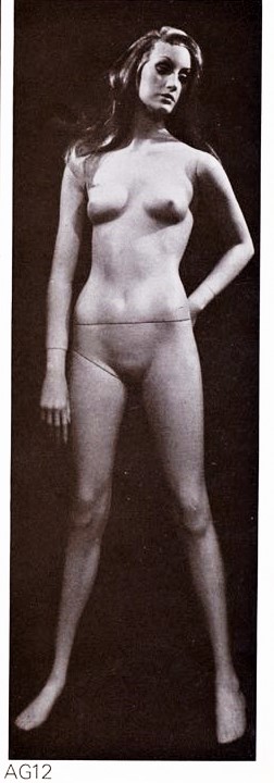 Wie in meinem Blog hier schon an anderer Stelle beschrieben, sind bei diversen Herstellern (Rootstein, Hindsgaul, New John Nissen usw.) innerhalb einer Serie die diversen Teile (Arme, Beine, Torsen) untereinander austauschbar, da die Verbindungen absichtlich so konstruiert wurden. Manchmal waren die Teile sogar serienübergreifend kompatibel. Sofort fällt auf, dass meine Caroline nicht die selben Beine hat, wie im Katalog. Sie besitzt die Beine von der Figur AG12 (siehe Bild) und die Arme sind auch von anderen Posen zusammengestellt worden.