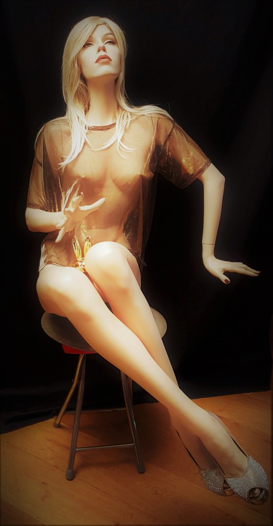 Sie stehen oder standen oft hinter Glas in übergrossen Vitrinen, am Rande von dröhnendem Verkehrslärm, in welchem man auch unter lebenden Menschen hatte laut reden oder gar schreien müssen, um sich zu verständigen: dabei spreche ich von Mannequins, die wortlos Mode präsentieren und trotzdem die Aufgabe hatten eine Botschaft zu vermitteln, ein Gefühl zu transportieren, mit dem Ziel bei Kunden Aufmerksamkeit zu erregen. Die Körpersprache ist dabei ein wesentliches Merkmal der Kommunikation – und Leslie von der Firma New John Nissen, aus der Serie „Beauties“ mit der Nummer PW 03 ist ein schönes Beispiel dafür.