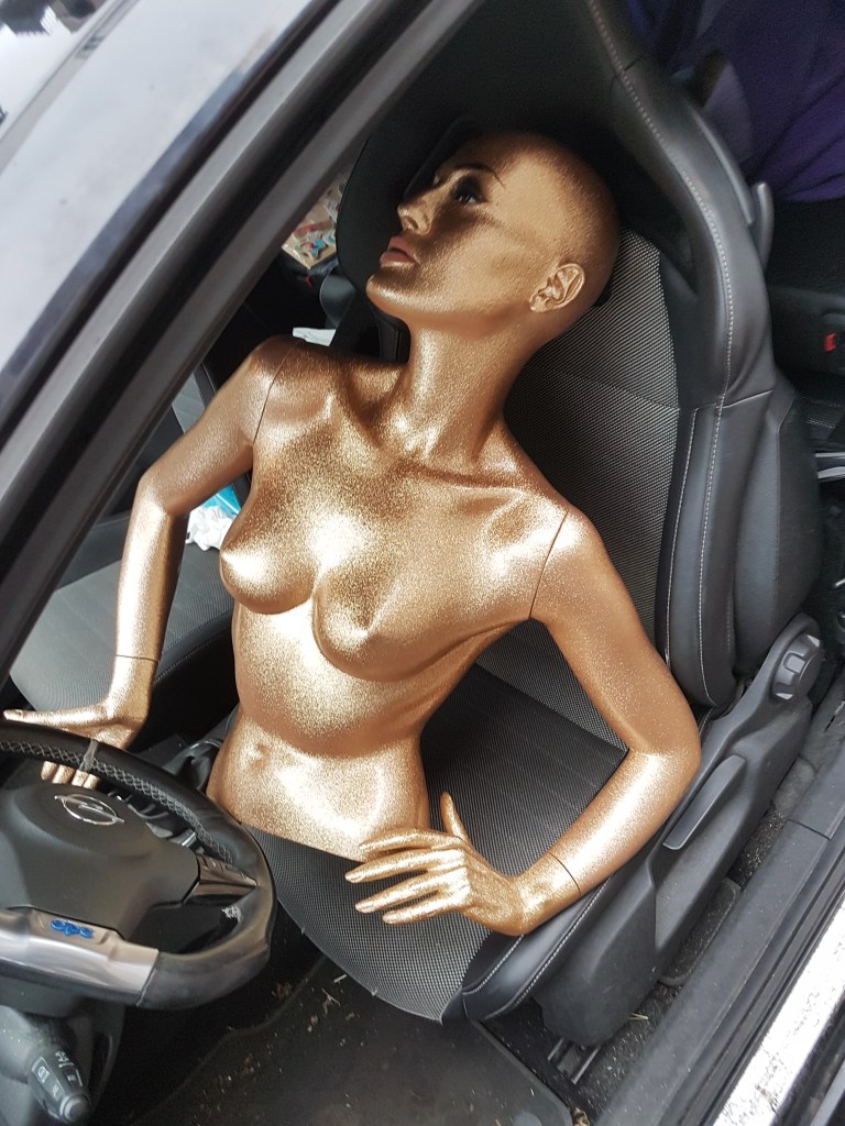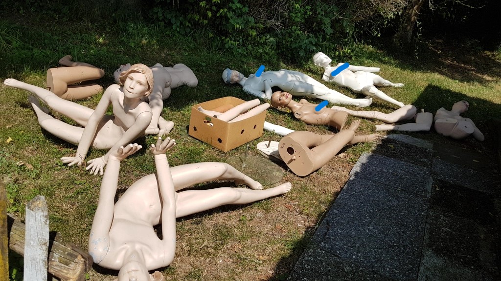 Eines Tages entdeckte ich das Inserat von dieser Schaufensterpuppe (Bild) und wusste natürlich gleich, dass ich sie haben musste. Ich fuhr nach Bern und sah sie staubig und etwas unansehnlich in einem dreckigen Bretterverschlag, neben alten kaputten Möbeln und einem Leiterwagen stehen. „Du musst ein neues Zuhause haben, dringend!“ dachte ich, zerlegte sie und nahm sie mit nach Hause.