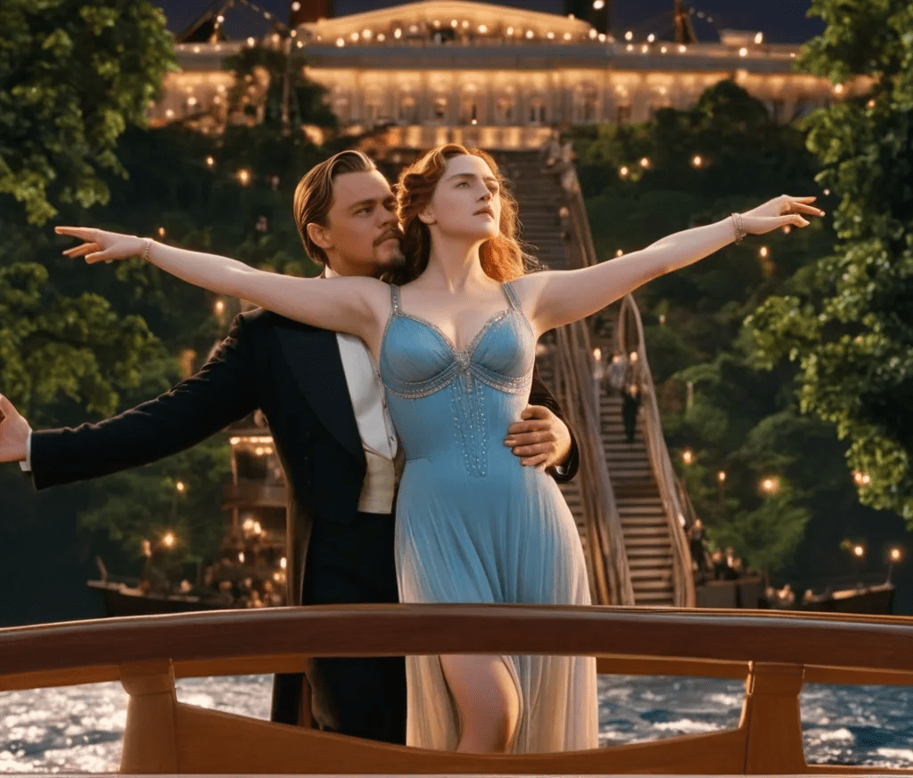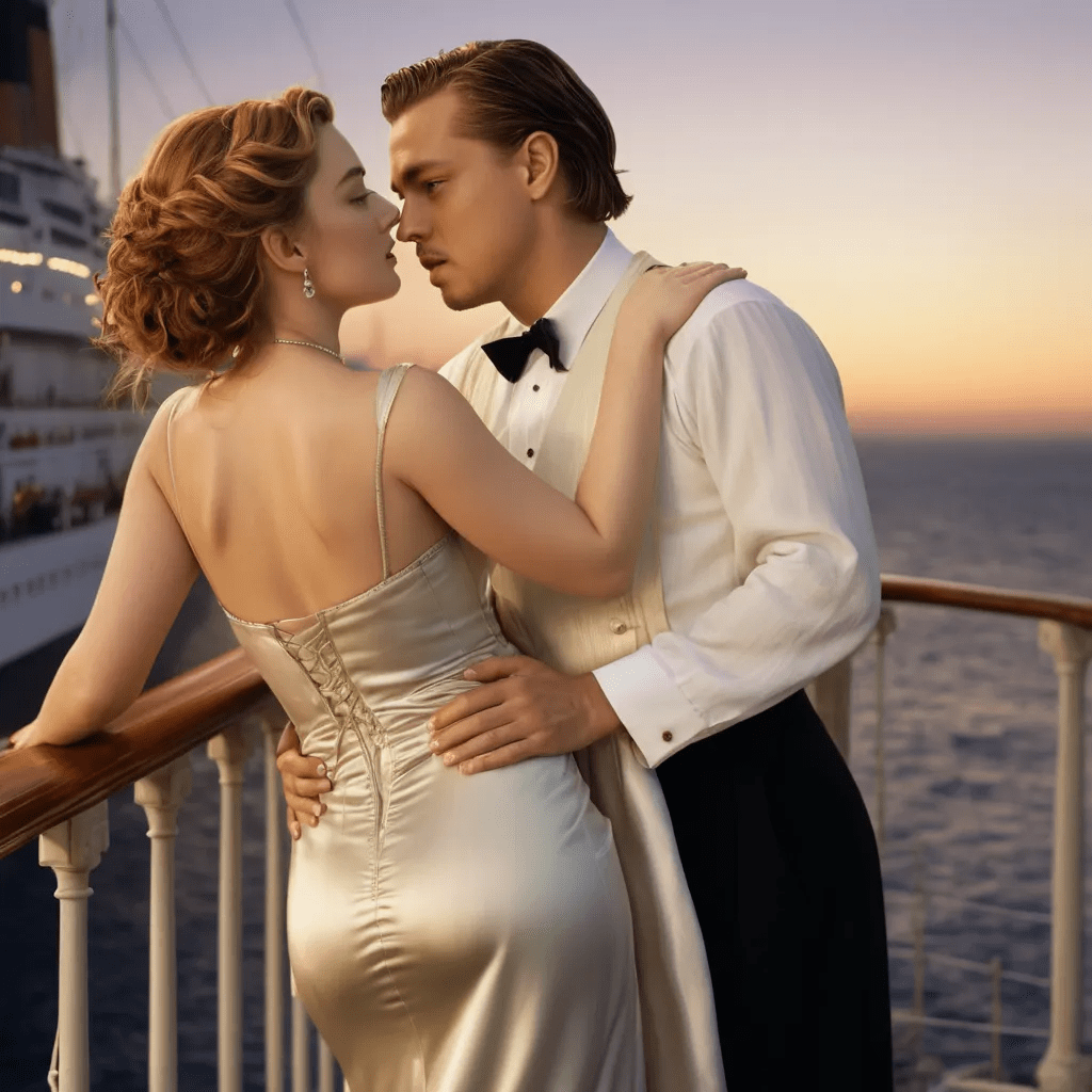 ....or finally, completely detached from the original template, without this pose with the outstretched arms, give Jack and Rose a romantic moment via AI that just sizzles!